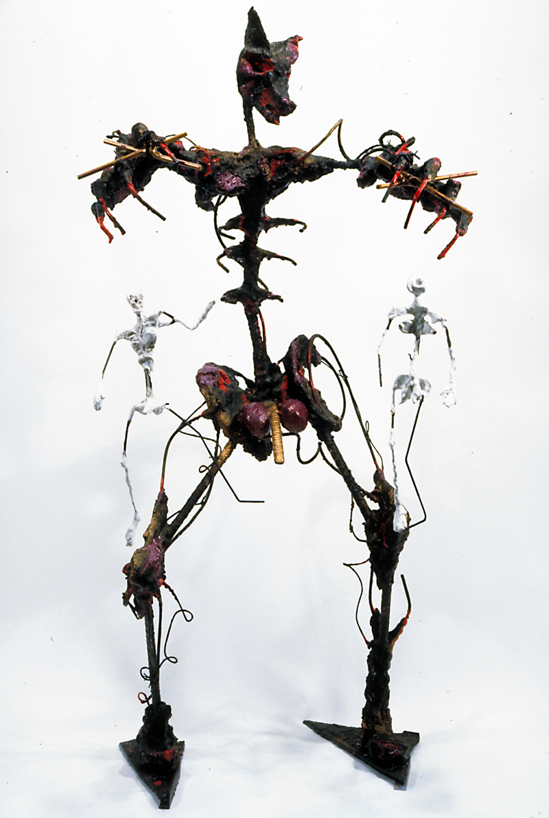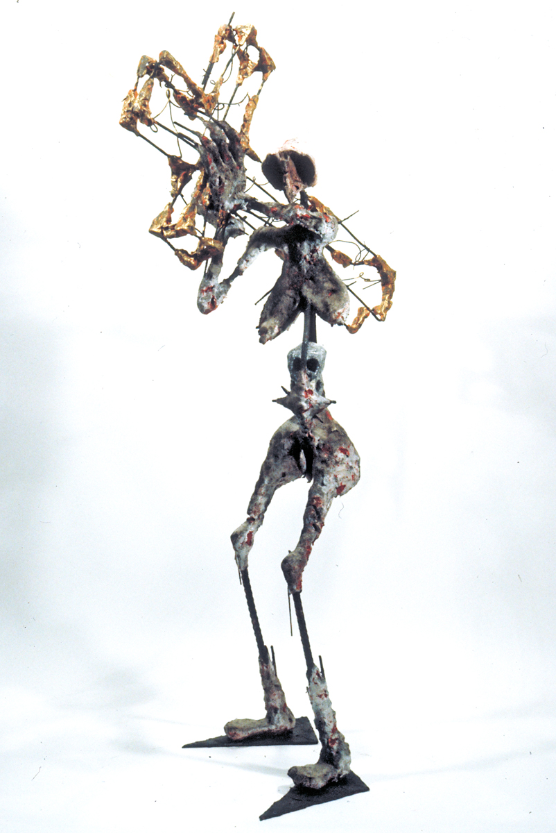 (with Cross & Skull), 1991, 52″h X 13″w X 33″d, 04 terra cotta, steel, oil, & mixed media