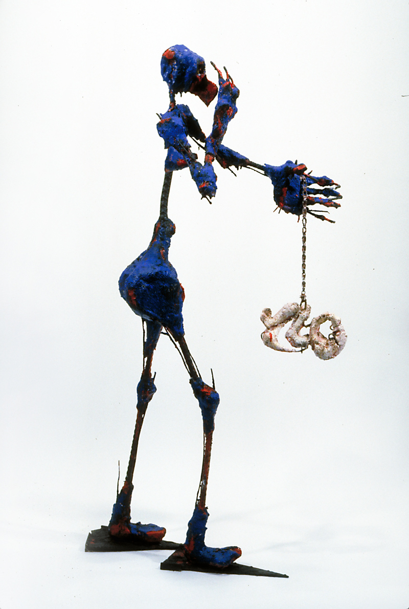 (with Noose & Money), 1991, 54″h X 24″w X 20″d, 04 terra cotta, steel, oil, & mixed media